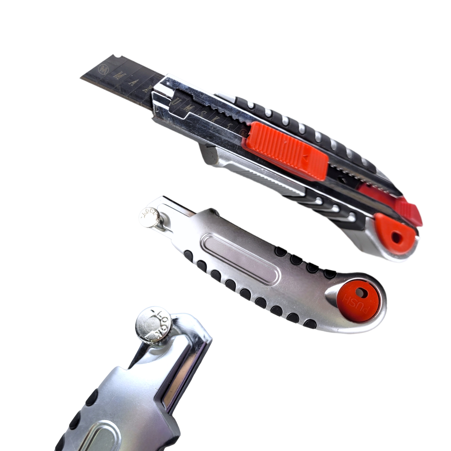 Строительный нож усиленный «Maximum Quality Tools» оборудован специальным фиксатором и металлическими направляющими, которые защищают от порезов. Канцелярский нож подходит для резки бумаги, картона, ткани, пластика, линолеума, обоев и т.д. Ребристый пластиковый корпус с прорезиненным покрытием не скользит при работе. В наборе 5 универсальных лезвий для канцелярского ножа, которые имеют сегментированную структуру, что позволяет отламывать затупившийся сегмент и продолжать работу. Двойная заточка обеспечивает длительность службы. На каждом лезвии для ножа по 10 сегментов.