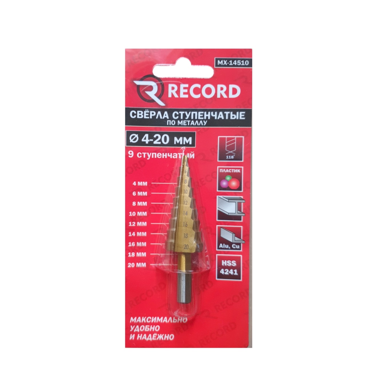 Сверло ступенчатое по металлу 4 - 20 мм с шестигранным хвостовиком заменит целый набор обычных сверл. Сверло HSS покрыто износостойким титановым покрытием. Специальная проточка хвостовика создана для работы с быстросъемными адаптерами на дрель и перфоратор.
